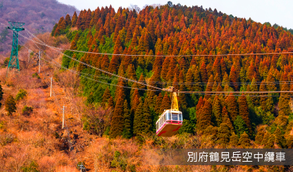 從海拔503米到1300米的山頂10分鐘的空中漫步令人興奮。在天氣晴朗的日子裡,高崎山、四國、中國地區的景色都一覽無遺。春天可觀賞櫻花、杜鵑花,夏天有1000萬美金的夜景,秋天的紅葉,冬天的霧冰四季各種美景令人神往。別府鶴見岳空中纜車